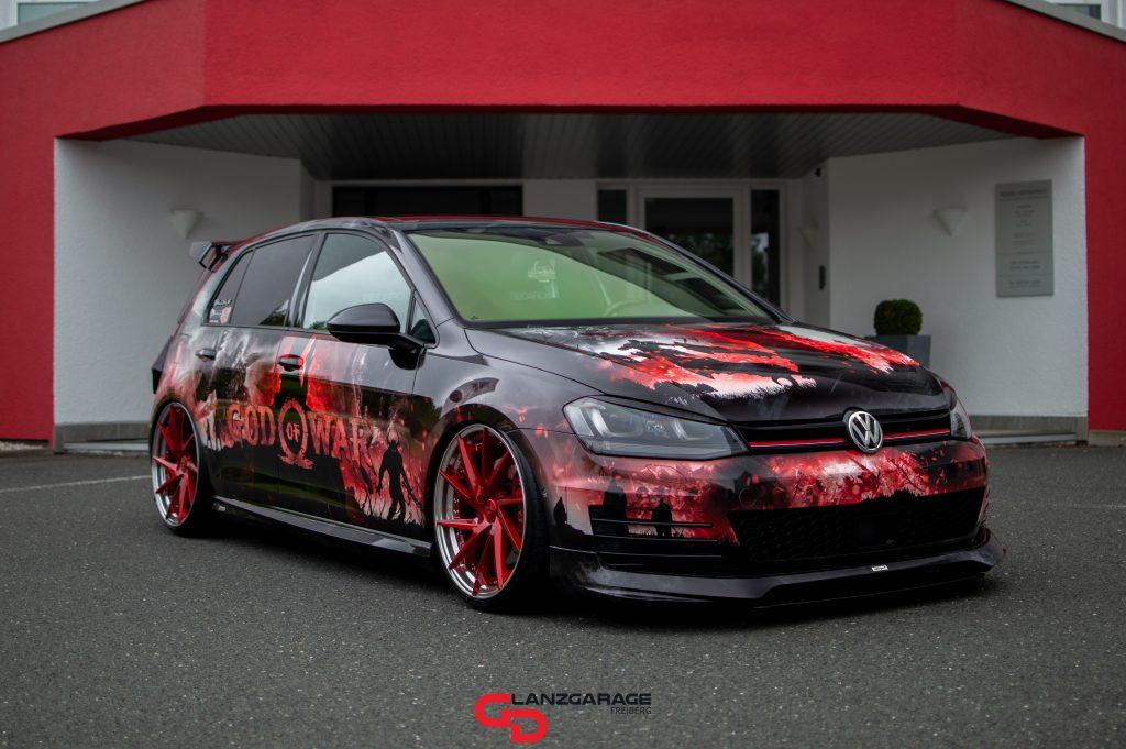 …Voll-Folierung am VW Golf VII GTI. Alexander und sein GTI waren nicht das erste Mal zu Gast in der GlanzGaarage. Bereits 2021, damals noch im Originallack, bekam er von mir „auf die Fresse“ 😂