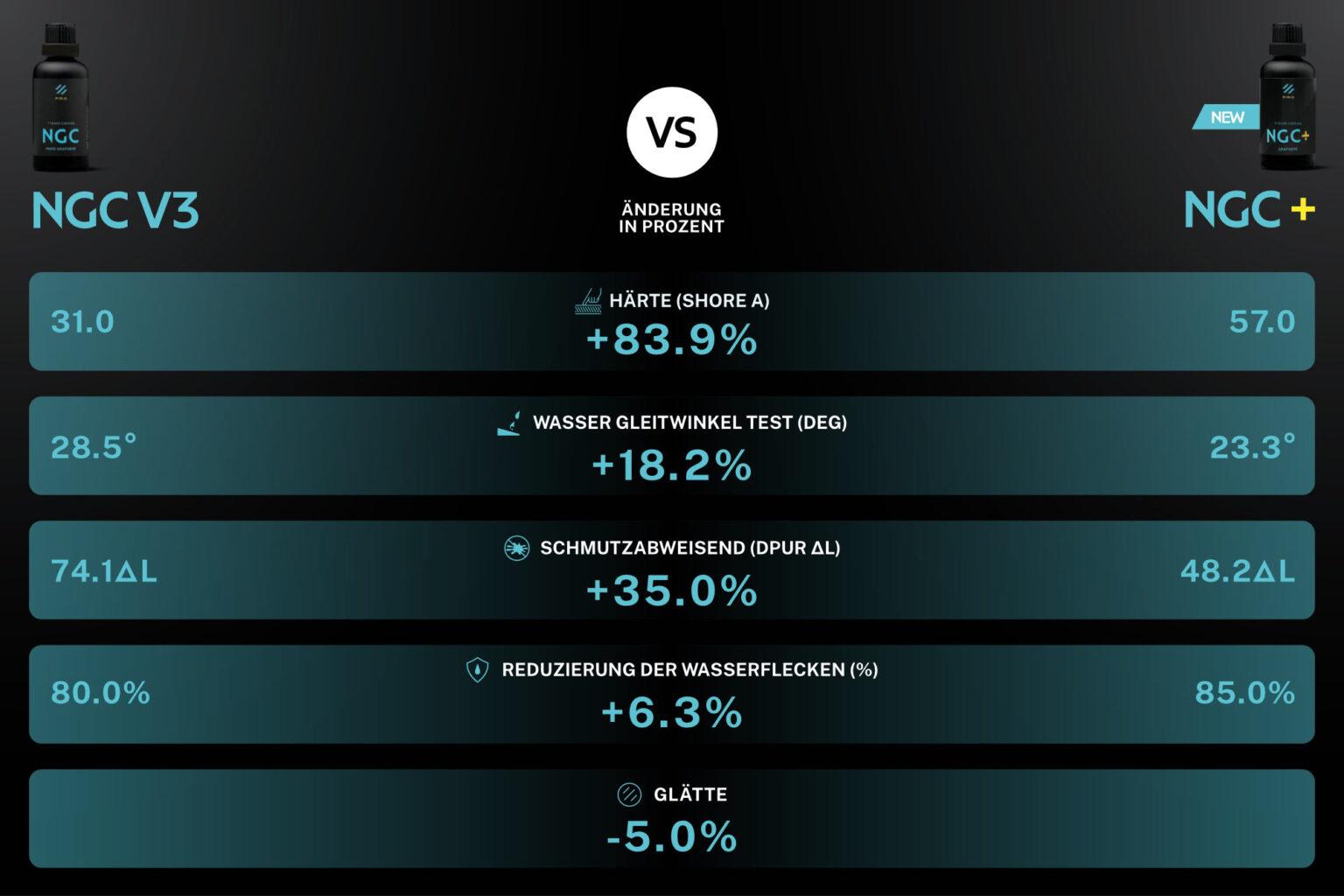 Die in der Version V4 (NGC+) nochmals gesteigerte Glätte sucht unter den verfügbaren Coatings auf dem Markt seines gleichen. Diese extreme Glätte ist der Garant für die phänomenalen hydrophoben und oleophoben Eigenschaften und reduziert somit die Neigung zur Wiederanschmutzung, extrem.