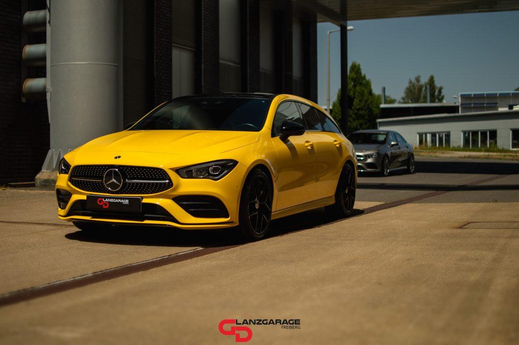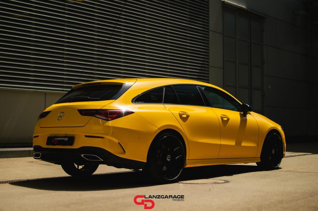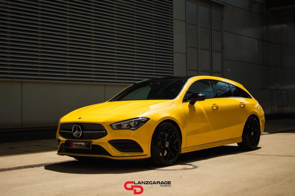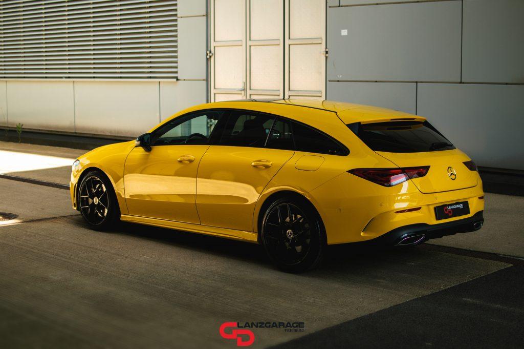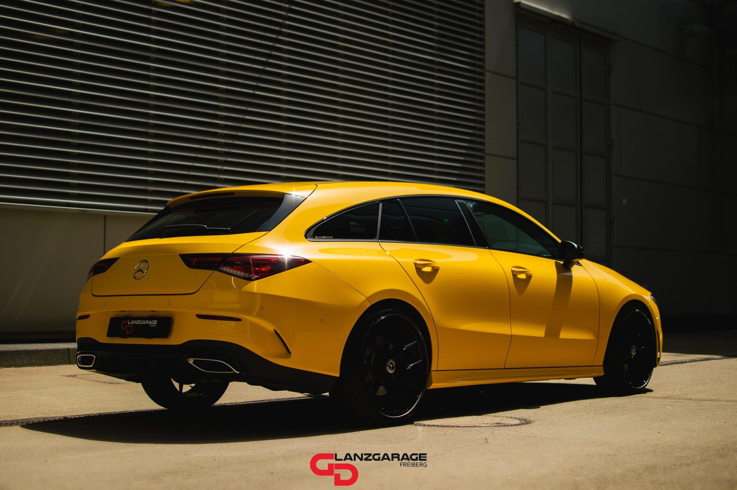 Zurück zum shooting brake. Der junge Stern war vom Lackzustand noch fast tadellos und konnte bis auf einer Handvoll Bauteile alles einstufig auf sein neues Sonnengelb-Level gebracht werden. Maximilian, ein Autoliebhaber wie er im Buche steht, war schon vor Fahrzeugabgabe extrem aufgeregt und gespannt wie der CLA am Ende dastehen wird.