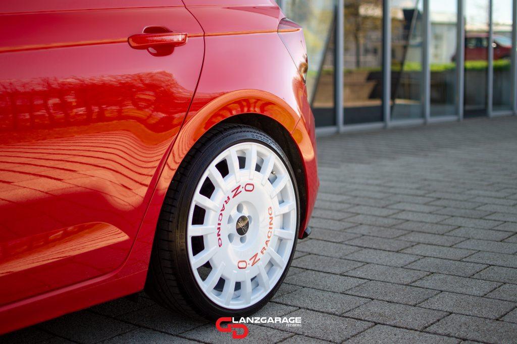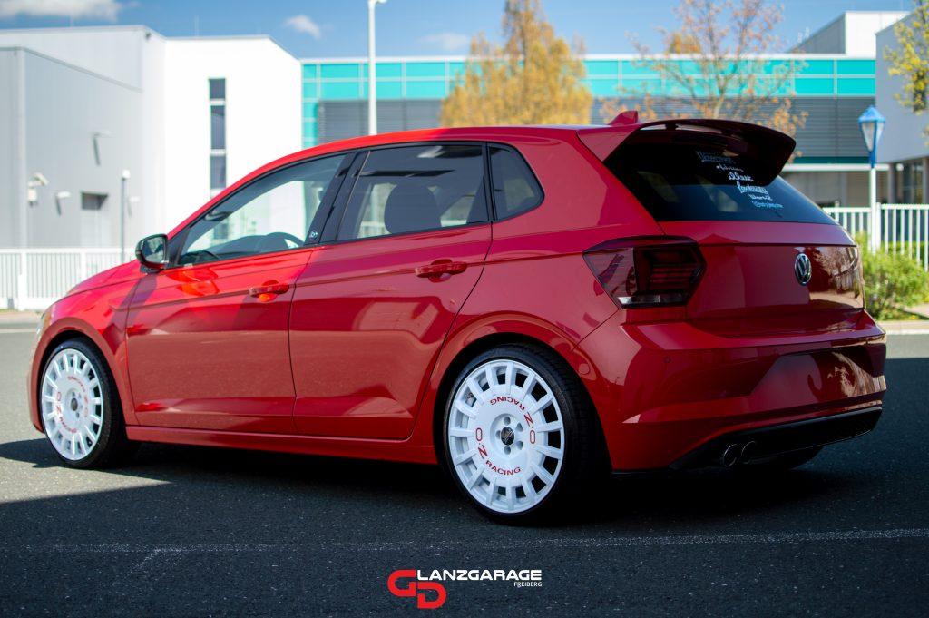 Tatjana und ihren roten Polo habe ich durch Toni kennengelernt. Damals war Toni noch ihr Freund, heute können beide stolz den anderen als Ehepartner bezeichnen ❤️ Toni war vor Tatjana, mit seinem blauen Golf V R32 in der GlanzGarage. Für eine Aufbereitung mit anschließender keramischen Versiegelung. Schon damals sagte Tatjana…meinen Polo bekommst du auch noch. 🚗❤️ Und wie man auf den Bildern erkennen kann, ihr Polo war für eine Kur bei mir. Tornado-Rot…mmh…inzwischen war es vergraut, stumpf und mit Swirls…mal tiefer, mal weniger tief…überseht. Ganz wie Tonis R32 sollte es jedoch nicht werden…keramisch beschichten, ja…aber in erster Linie die weißen O.Z. Felgen sowie die Verglasung. Weiße Felgen und schwarzer Feinstaub der Bremsbeläge…eine Kombination die jede Woche zum reinigen der Felgen verleitete. Um das zu vereinfachen kam eine, bis 1080 Grad Hitze beständige, Felgenversieglung zum Einsatz. Einfacheres reinigen und Glanz sowie Farbvertiefung sind nur drei Eigenschaften solch einer Beschichtung, die die nächsten Jahre auch Felgenreinigern und Co trotzen wird.
