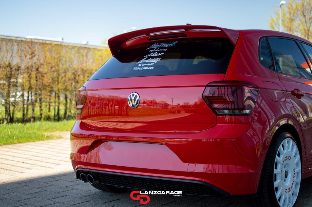 Nach einem mehrstufigen Polierverfahren der Lackflächen, drückt das Rot wieder hart in den Augen und es fällt einem sichtlich schwer lange Zeit den Polo zu mustern. Dementsprechend schwierig war es wieder, dass Tornado-Rot mit der Kamera einzufangen. Der Polo war nun frei von Swirles, Hologrammen und tieferen defekten…keine Spur mehr vom Grauschleier.
